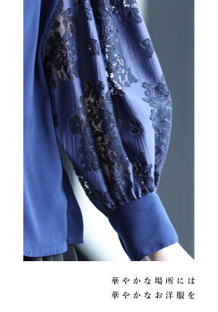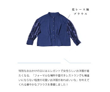 【セール商品返品交換不可】◇◇(S~L/2L~3L対応)(ネイビー)上品花レース袖のウエストタックブラウストップス