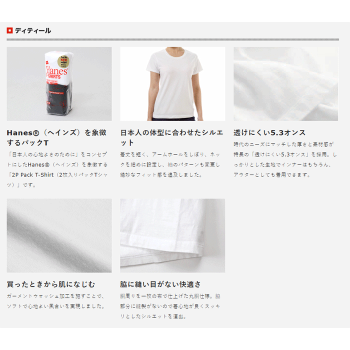 メーカー希望小売価格はメーカー商品タグに基づいて掲載しています商品名 ヘインズ Japan Fit 2枚組クルーネックTシャツ 素材 リングスパンコットン(綿100%) 生産国 中国製 サイズ M・L 特徴 ガーメントウォッシュ加工 丸胴仕様 タグレス仕様 注意 ※当品は他店舗でも併売のため、取寄せの場合がございます。