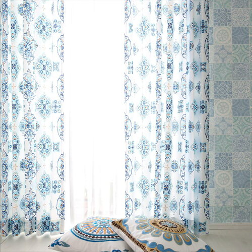 【¥6,600〜】 カーテン おしゃれ 洗濯可能 オーダー 丈50cm-285cm 幅30cm-300cm モロッカン モロッコ風 タッセル付 フック付 ブルー 〜ガミラブルー 〜