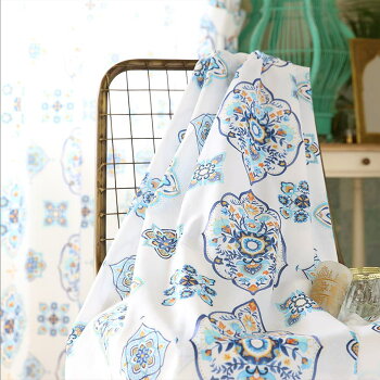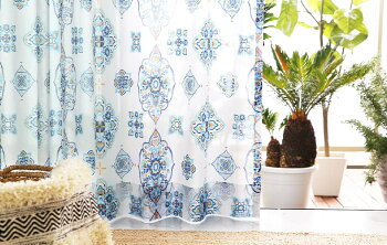 カラーバリエーションの詳細 ブルー クリックで拡大 ルーとイエローのコントラストが美しいモロッコタイル模様のレースカーテン〜ガミラブルーレース〜