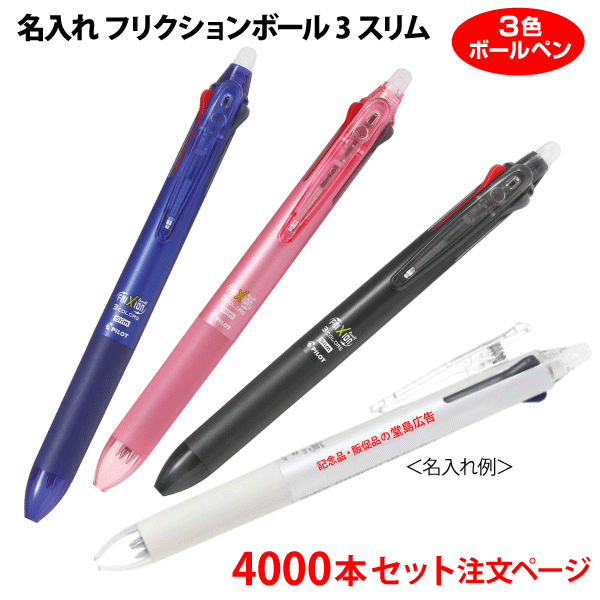 (4000本セット 単価414円)名入れ有り「フリクションボール3スリム(0.5mm、0.38mm)」LKFBS60EF 消せる3色ボールペン(黒・赤・青)記念品ボールペン PILOTボールペン