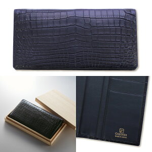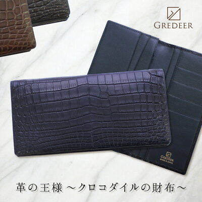 ワニ革(クロコダイル)のプレミアム財布 GREDEER クロコダイル 長財布 【カラー:ネイビー】 防水加工を施したクロコダイル革を使用したプレミアム財布!お金にパワフルな住処を!!