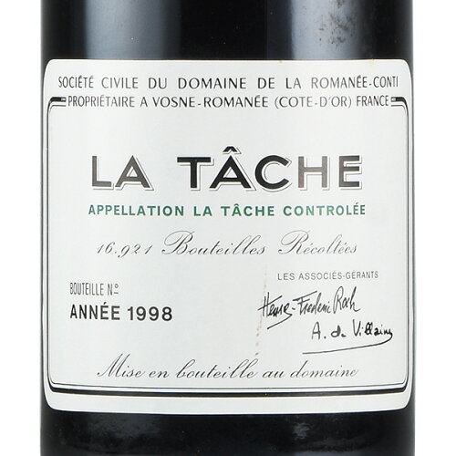ロマネコンティ ラ ターシュ 1998 ラベル不良 ドメーヌ ド ラ ロマネ コンティ ラターシュ DRC La Tache フランス ブルゴーニュ 赤ワイン[のこり1本]