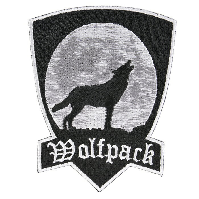ミリタリーパッチ ウルフ アイロンシート付 ブラック ミリタリーワッペン アップリケ 狼 ウルフパック Wolfpack 遠吠え Howling スリーブバッジ
